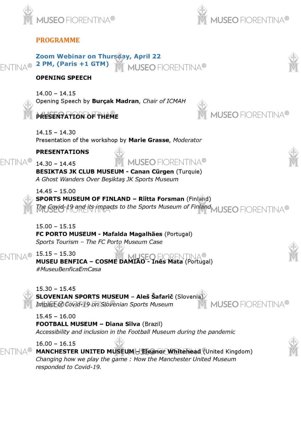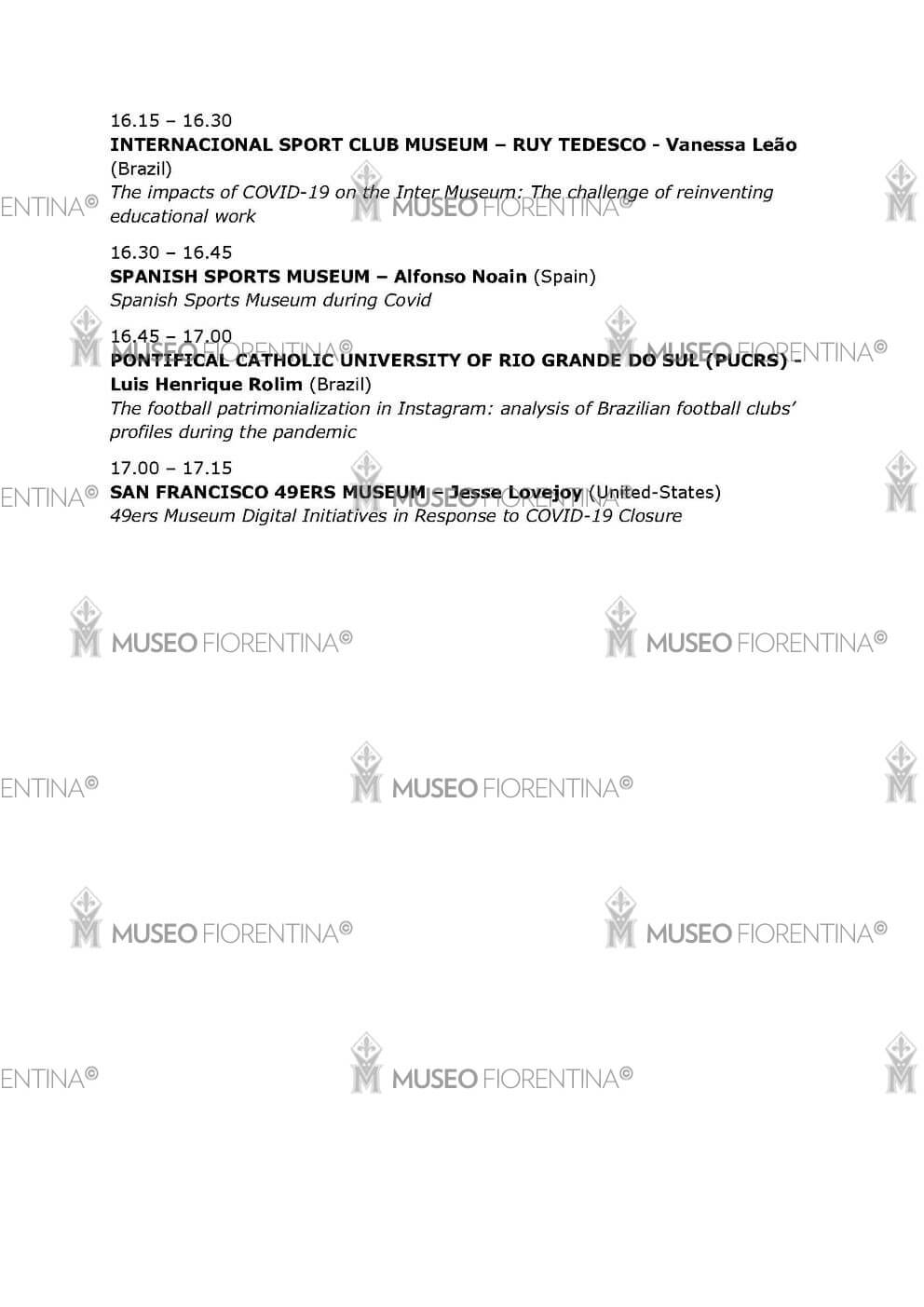 Il 22 aprile 2021 il Museo Fiorentina, come membro di ISMA, partecipa al convegno online promosso da ICMAH, International Committee for Museums and Collections of Archeology and History, intitolato: “Covid 19 Impacts and Consequences on Sports Museums”. Il Museo Fiorentina partecipa con il presidente David Bini