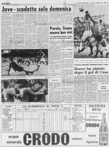 Eh no, è troppo! Boniperti abbandona lo stadio stizzito e Casarsa, da fermo, realizza. E son tre! E i gobbi, sportivamente, cominciano a sfollare: ma aspettate, c’è tempo… Il tempo di vedere la perla di Caso, che con un destro magistrale da fuori area leva le ragnatele nel sette alla sinistra di Zoff.
